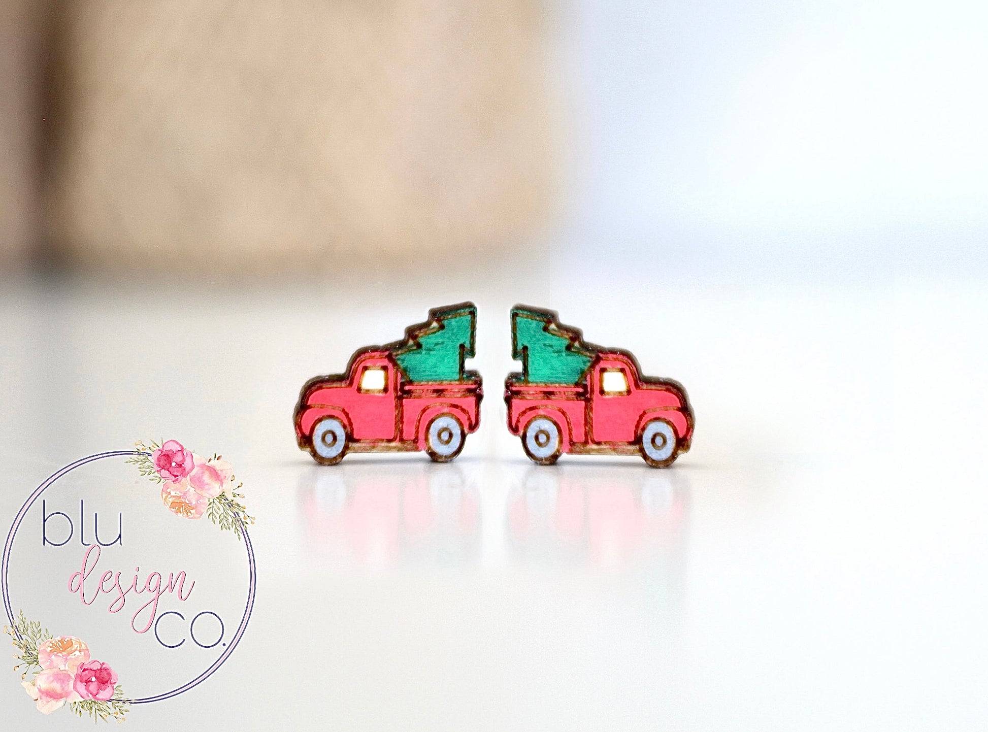 These earrings are made of birch wood and hand painted. Measure 12mm at widest point. Made with stainless steel posts.