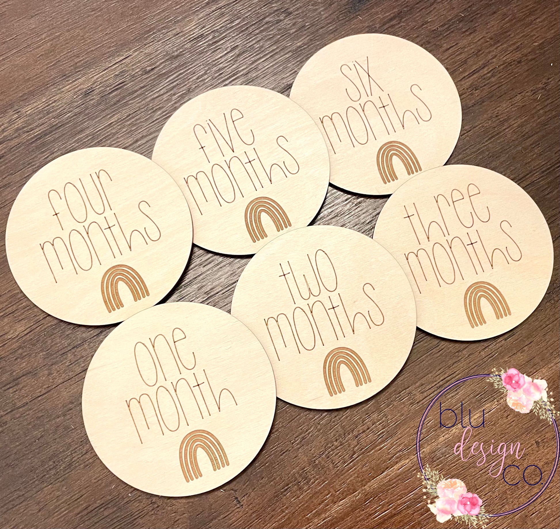 These 4” wooden engraved rounds are perfect for baby’s monthly photos! These are double sided, so months 1-6 are on the fronts and 7-12 are on the backs. Optional coordinating Hello World sign can be included for baby’s very first photos!