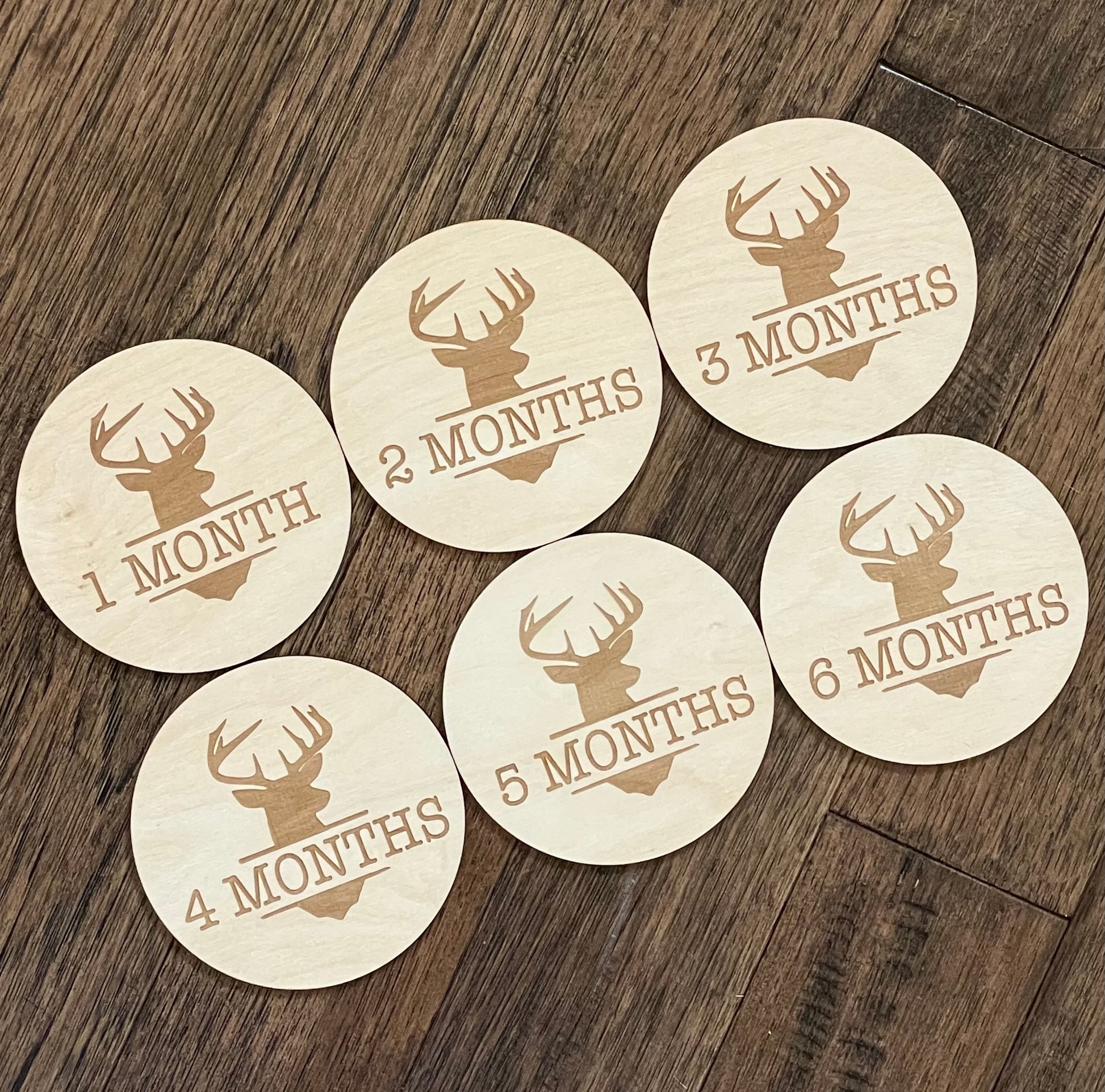 These 4” wooden engraved rounds are perfect for baby’s monthly photos! These are double sided, so months 1-6 are on the fronts and 7-12 are on the backs. Optional coordinating name sign (can also put Hello World in place of name) can be included for baby’s very first photos!