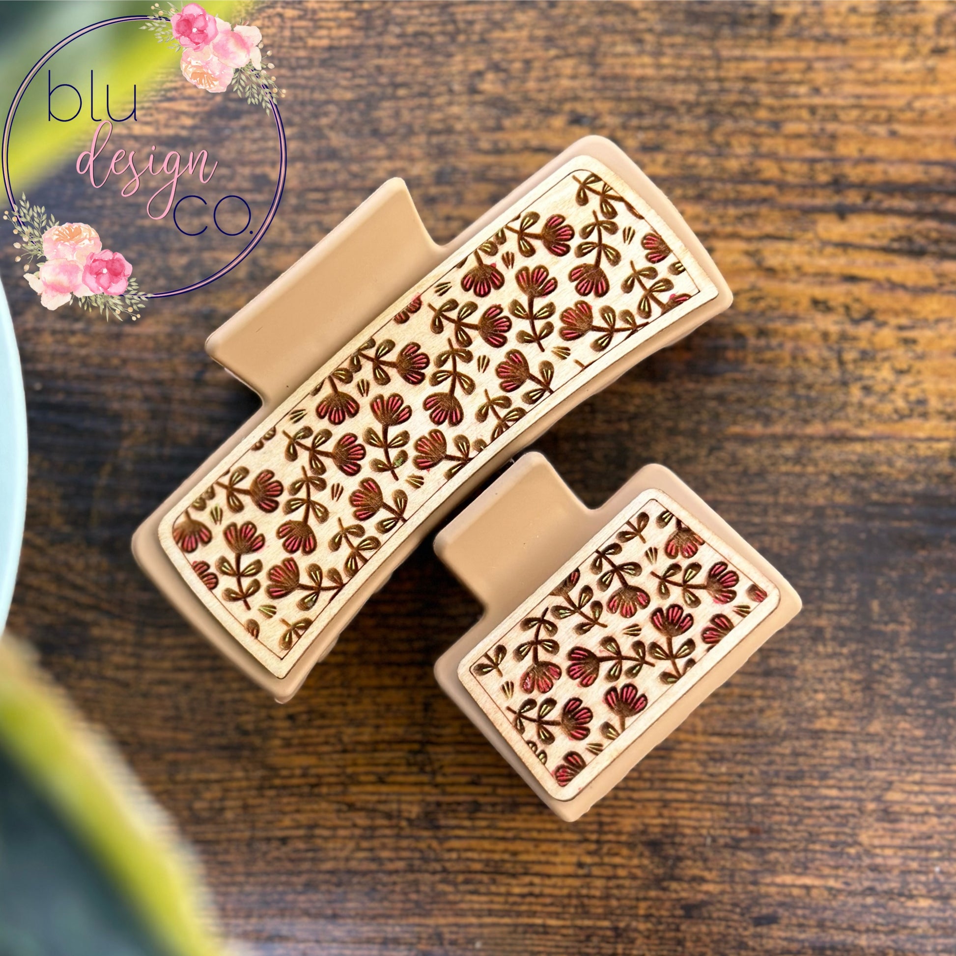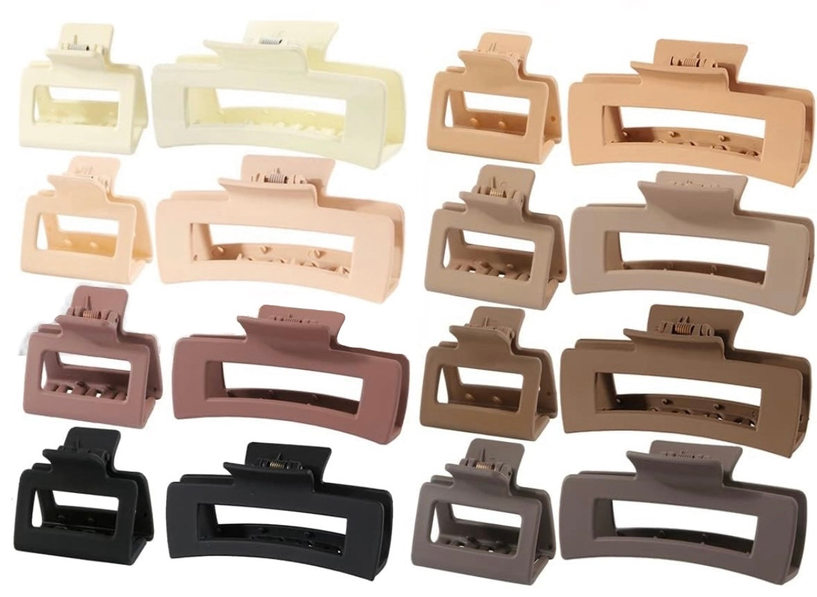 Hold your hair back in style with a unique claw clip. Available in 2 sizes: 2” or 4.2”. Adorned with a thin engraved and stained/ painted piece on both sides. Clip itself will come in randomly assorted neutral colors. Second photo shows all of the options I have to choose from. Feel free to request a preference from them, and I will get as close as possible with what I have on hand.