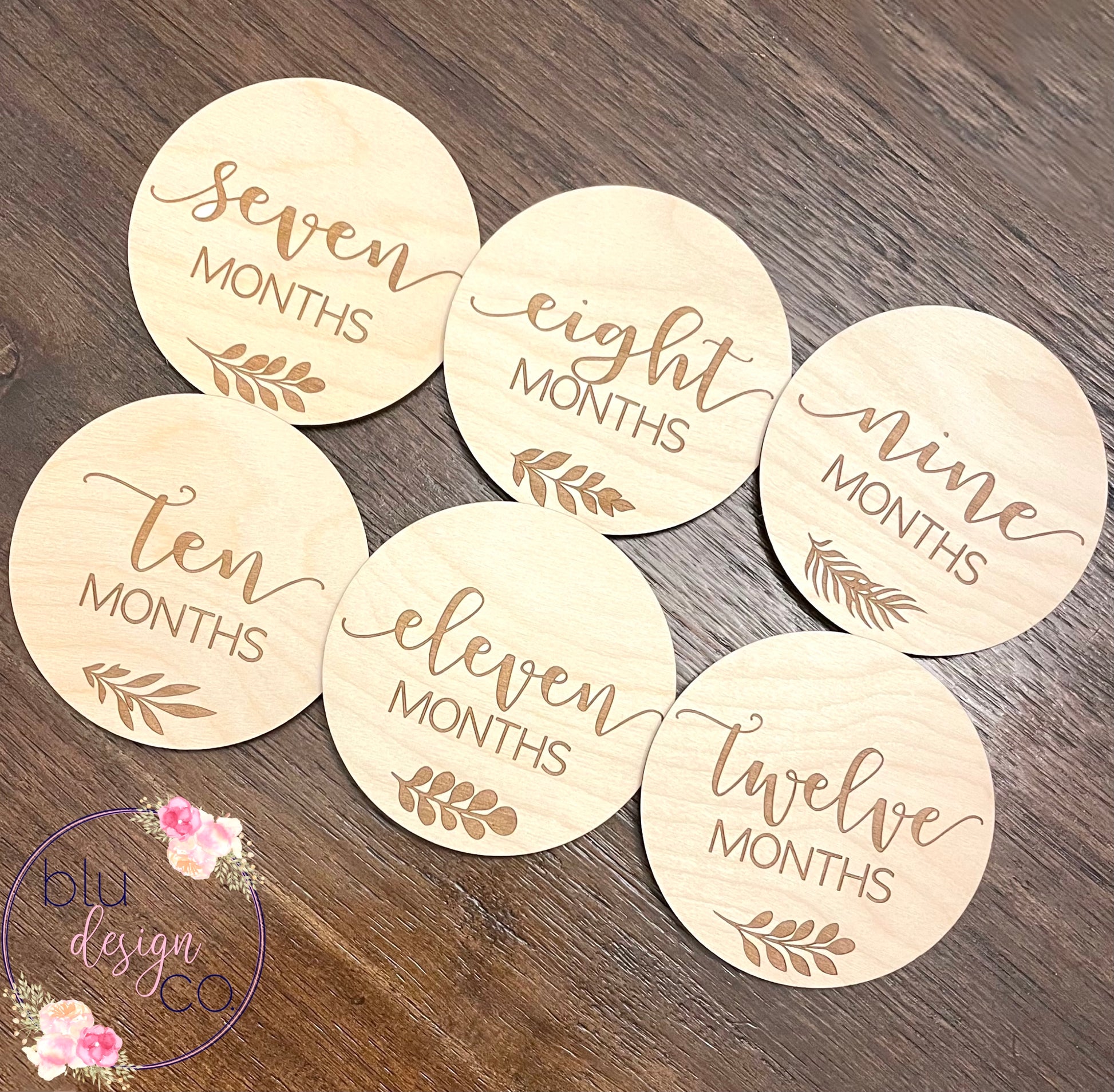 These 4” wooden engraved rounds are perfect for baby’s monthly photos! These are double sided, so months 1-6 are on the fronts and 7-12 are on the backs. Optional coordinating Hello World sign can be included for baby’s very first photos!