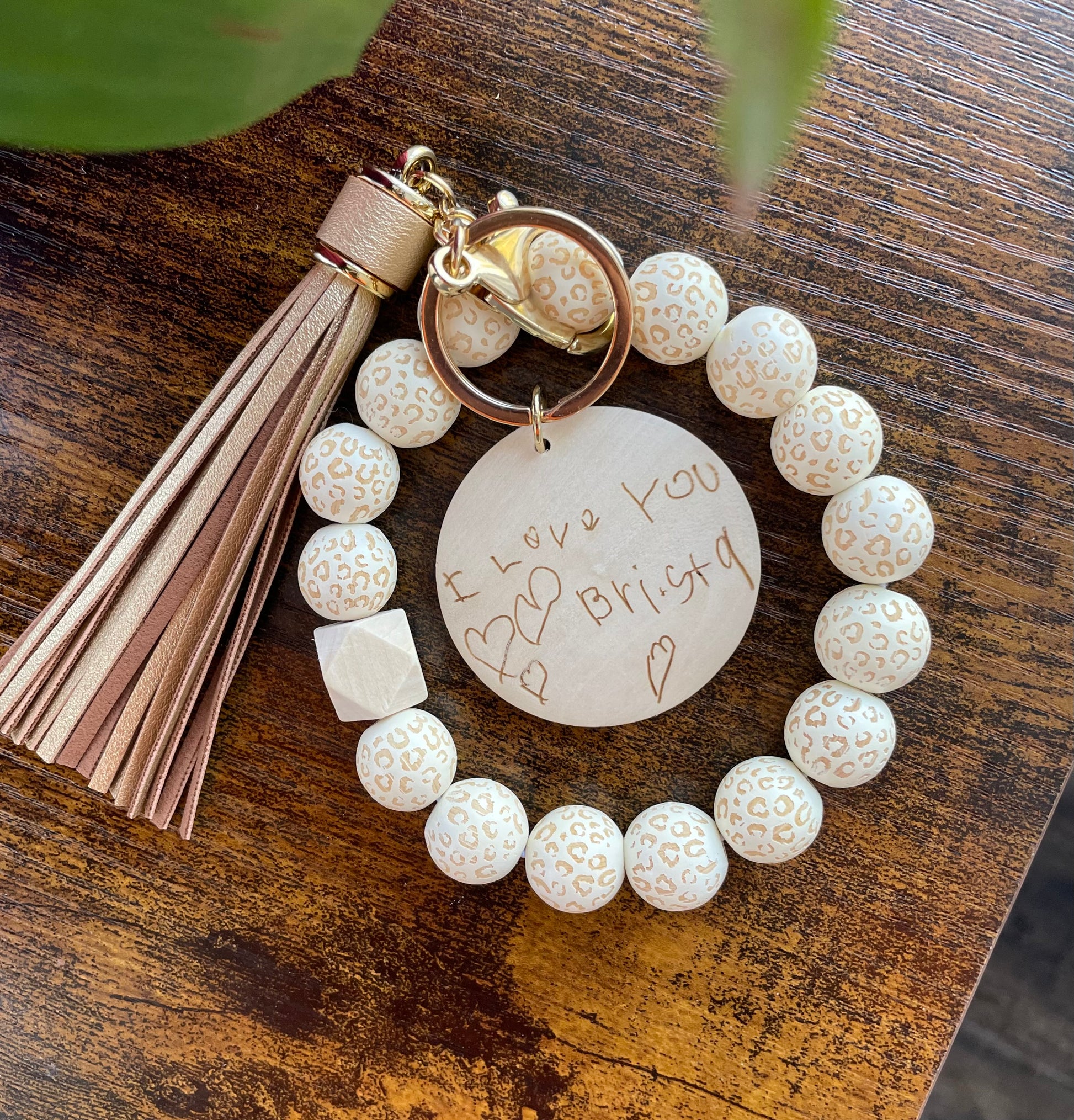 These wristlets make a beautiful addition to your car keys! Also makes it simple to throw it on your wrist and be hands free when you don’t want to carry a purse for your keys. Please email a picture of the handwriting to hello.bludesignco@gmail.com after purchase with the order number. More color options shown in last two photos.