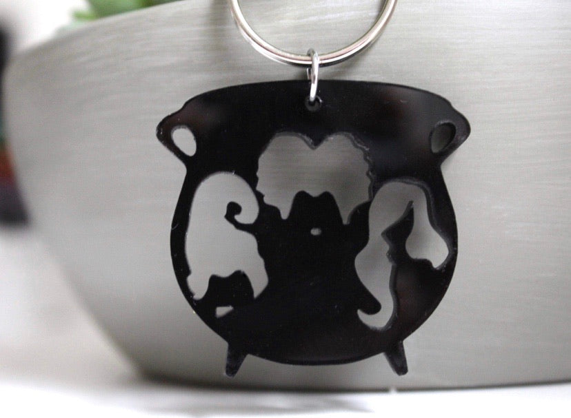 This fun acrylic keychain is made of laser cut black acrylic! Approx 1.5” wide.