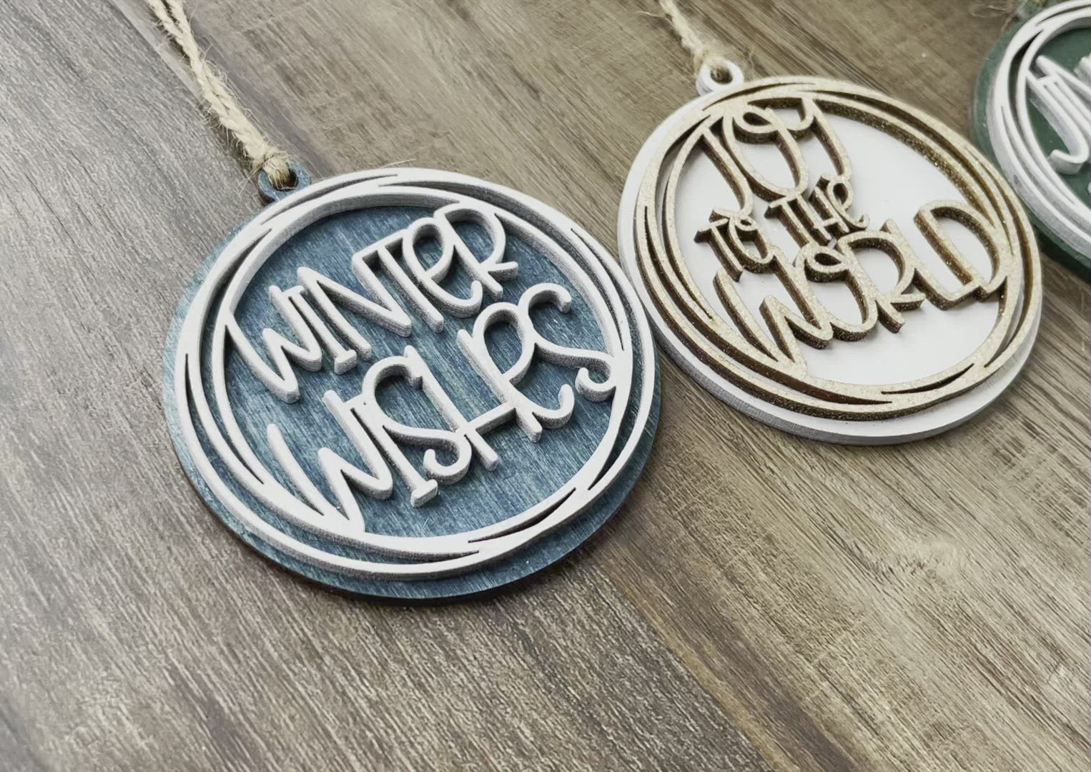 These ornaments will look great on your tree! Mix and match multiple for even more fun. Made of stained and painted wood and layered for a more interesting look. Measure approx. 3.25” in diameter.