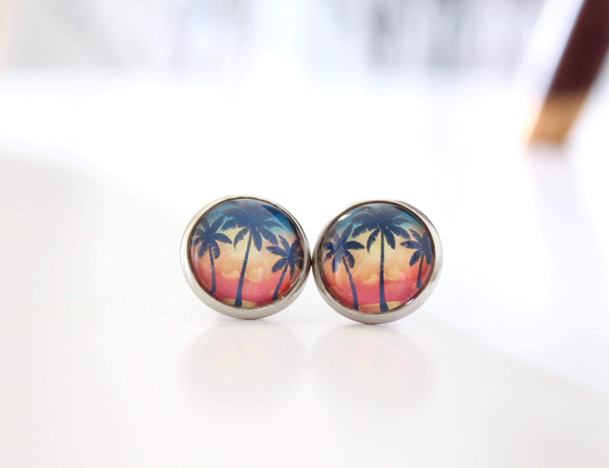 These adorable palm tree earrings are made with surgical grade stainless steel posts. 12mm in size.
