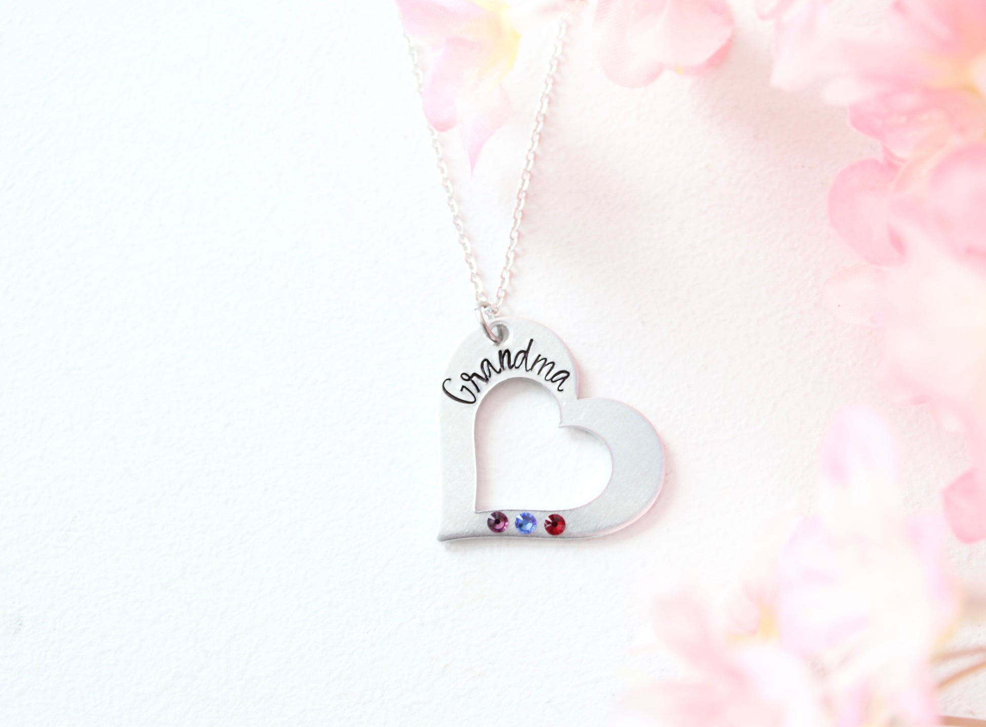 Our personalized grandma heart necklace will make a beautiful, unique gift. Adorned with up to 12 embedded birthstones of your choosing. Write the birth months you need in the notes to seller at checkout. Will come with Grandma by default, but just write in the text box if you’d like a different word such as Gigi, Nana, Mama, Mimi, etc. The length of the chain is about 18", which is the most popular standard size for a necklace. The heart is about 1.25” in diameter. I'm happy to answer any questions- just send me a message!