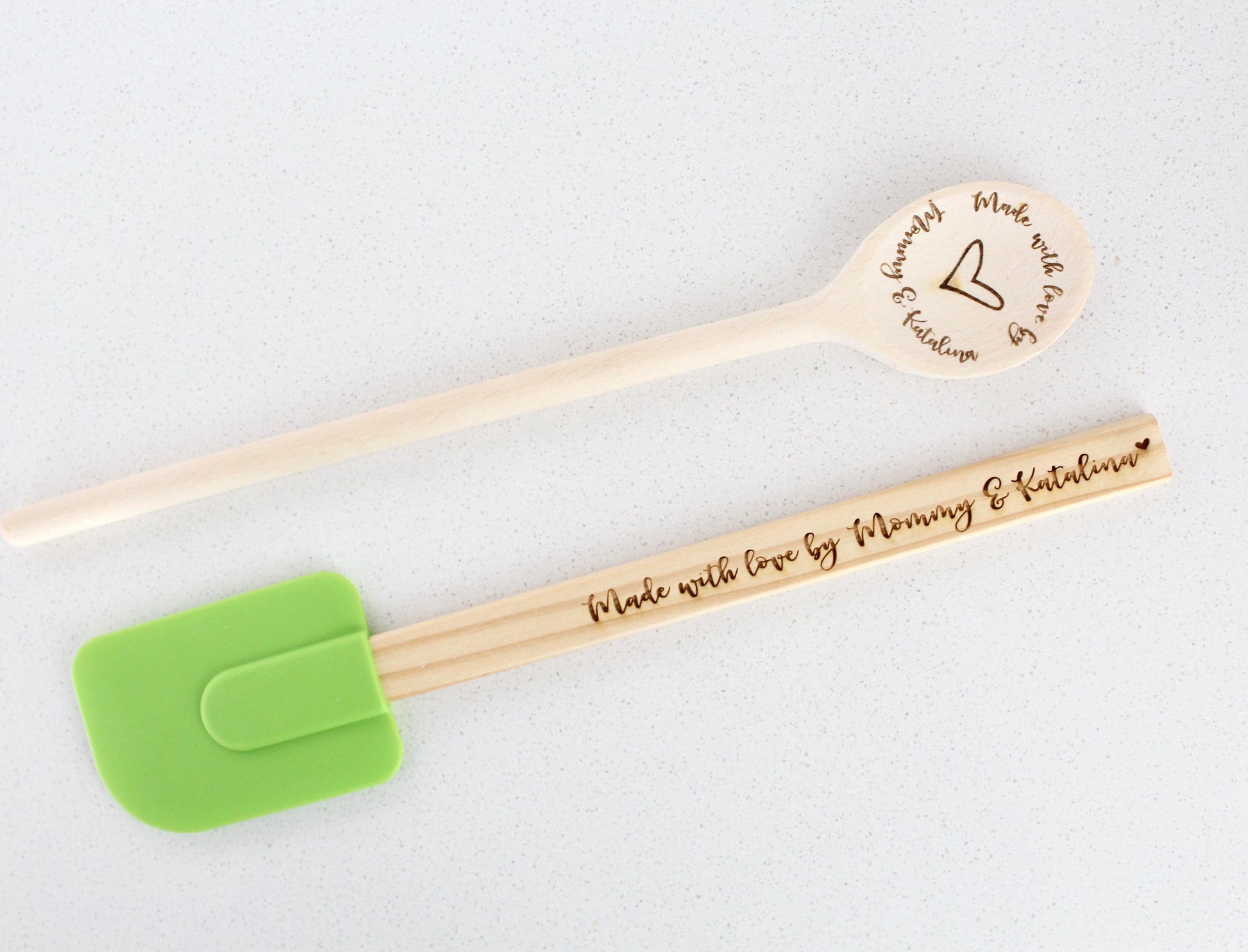 Personalized Made w/ Love By Mommy & Me Wood Spoon/ Spatula Set
