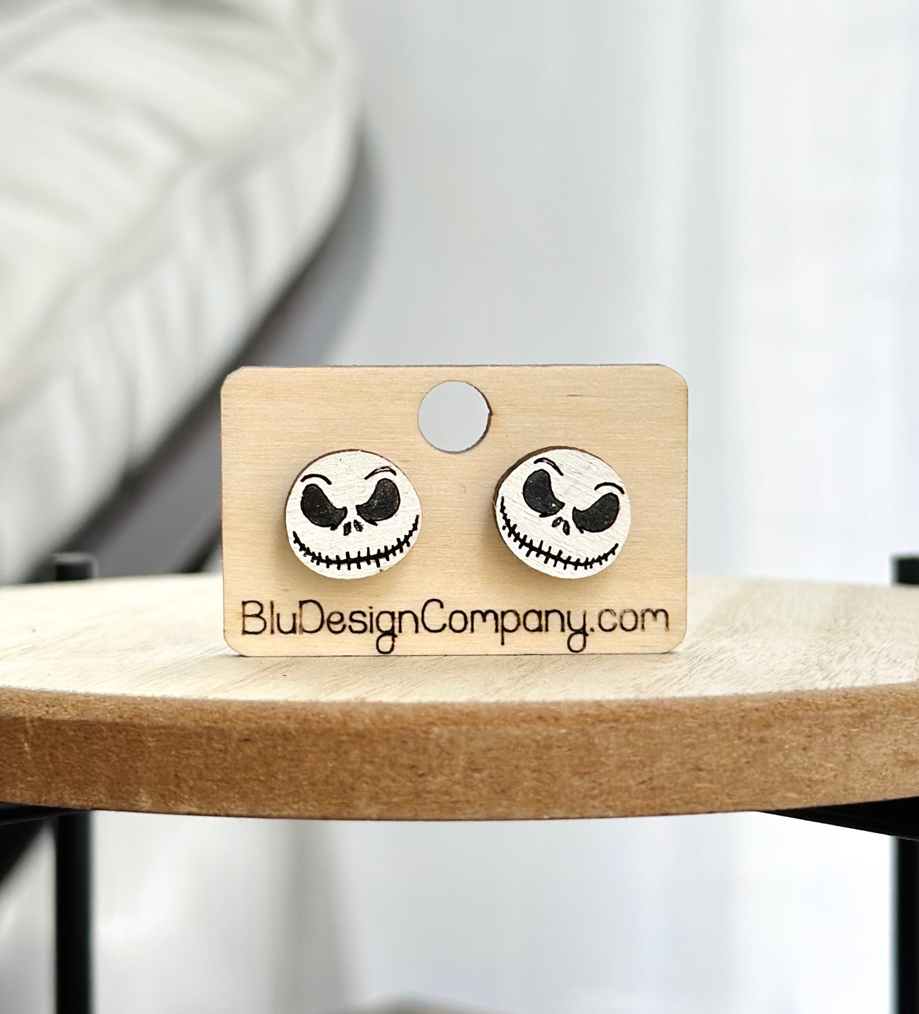 These earrings are made of birch wood and hand painted. Measure 12mm at widest point. Made with stainless steel posts.