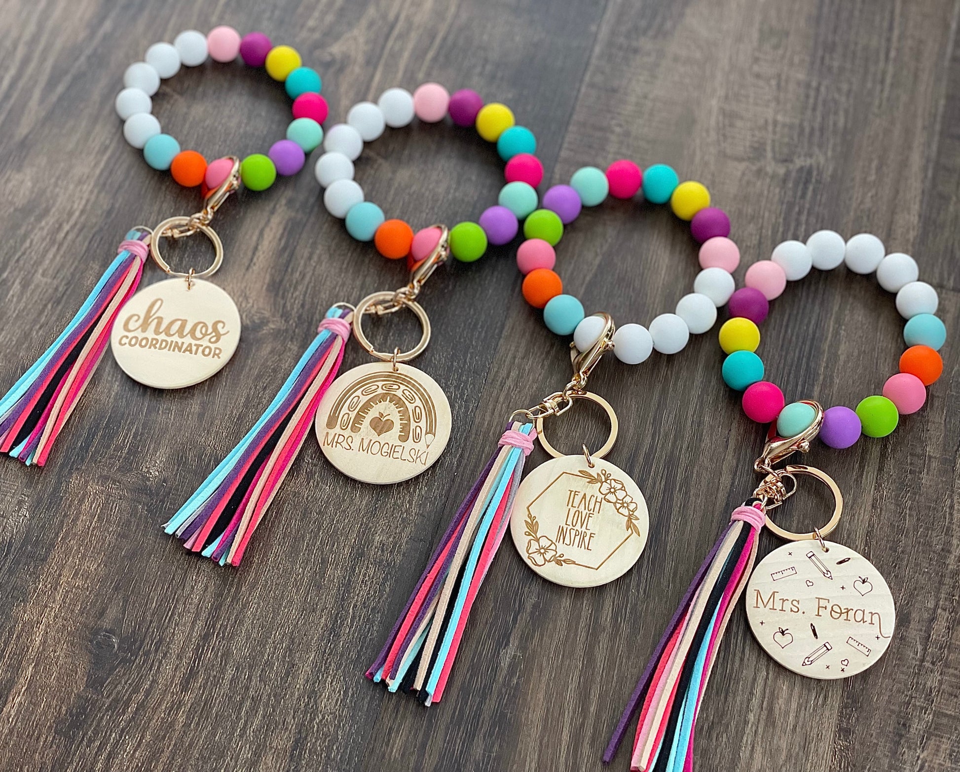 These wristlets make a beautiful addition to your car keys, classroom keys, etc! Pick a fun teacher related design from the 2nd image options. Make sure to leave design choice in the notes with any personalization if needed. More color options shown in last two photos.